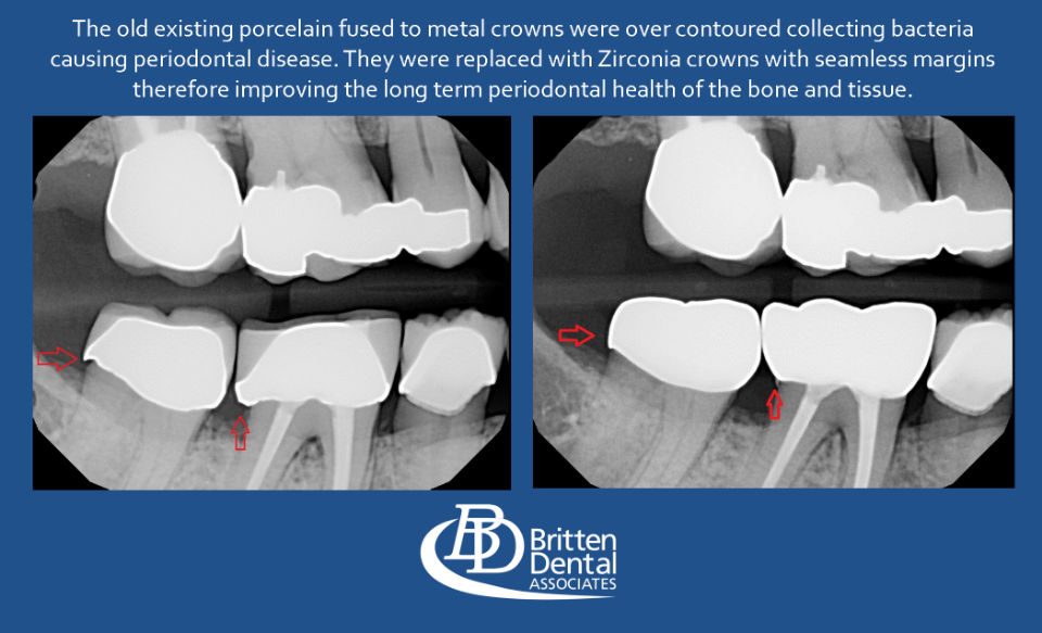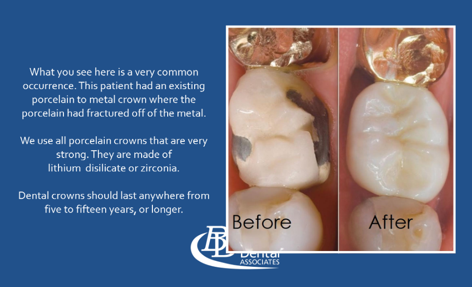 When a tooth requires a full coverage restoration to rebuild its structural integrity and appearance, how good the crown will look and how well it will withstand the forces of oral function are major considerations in choosing the type of crown. In the past, only metal crowns or ones fabricated out of porcelain fused to an underlying substructure of metal offered the strength required to bite and chew without breaking. While porcelain fused to metal crowns to this day remain a popular choice for strong, attractive and long-lasting restorations to rebuild teeth that are damaged, decayed, misshapen, worn down, undersized, or have had a root canal procedure, there are some drawbacks. For one thing, the thin metal margin at the collar of a PFM crown may be visible at the gumline (especially in the presence of receding gums). Also, due to the presence of an underlying metal shell, porcelain fused to metal crowns do not come close to handling light in the same way as natural tooth structure or dental ceramics.